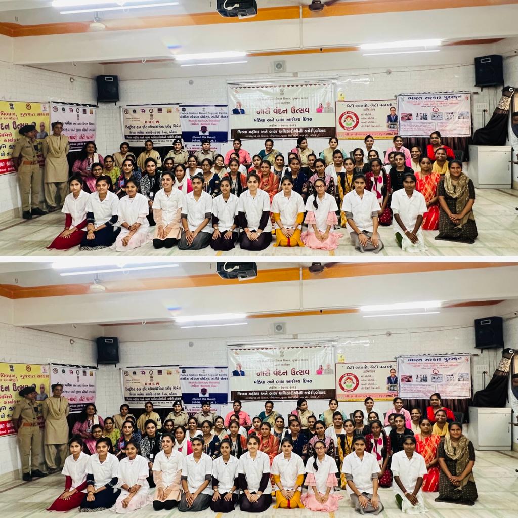 ત્યારબાદ શ્રી ધર્મભક્તિ નર્સિંગ કોલેજ ખાતે મહિલા આરોગ્ય દિવસની ઉજવણી કરવામાં આવી હતી. જેમાં કોલેજના આચાર્યશ્રી અશ્વિનભાઈ મેઘાણી, અધ્યાપક સ્ટાફ દશરથસિંહ વાઘેલા, વિનોદભાઈ પટેલ, વૈશાલીબેન સહિતના કર્મીઓ ઉપસ્થિત રહ્યા હતા. બોટાદ જિલ્લા મહિલા બાળ અધિકારીશ્રીની કચેરીના સંકલનમાં નર્સિંગ કોલેજની વિદ્યાર્થિનીઓને આરોગ્યને લગતી સરકારશ્રીની યોજનાઓ તેમજ સારા આરોગ્ય માટે કેવી કાળજી રાખવી જોઈએ તેના વિશે માહિતી આપી હતી. કાર્યક્રમમાં મહિલા આરોગ્યની થીમ પર નાટકનું પ્રદર્શન કરવામાં આવ્યું હતું.