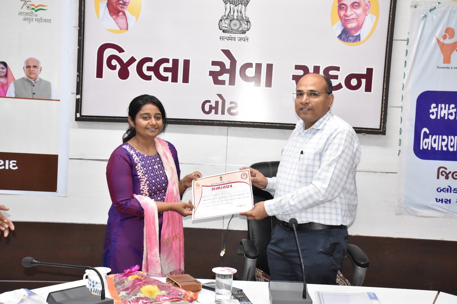 નારી વંદન ઉત્સવ-2023 અંતર્ગત બોટાદ જિલ્લા મહિલા બાળ અધિકારીશ્રીની કચેરી દ્વારા બોટાદ જિલ્લામાં ફરજ બજાવતા મહિલા કર્મયોગીઓનો સન્માન કાર્યક્રમ યોજવામાં આવ્યો હતો. જેમાં મહિલા કર્મયોગીઓને પ્રમાણપત્ર આપી તેમની કામગીરી બિરદાવવામાં આવી હતી.
