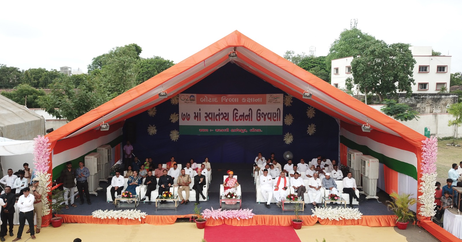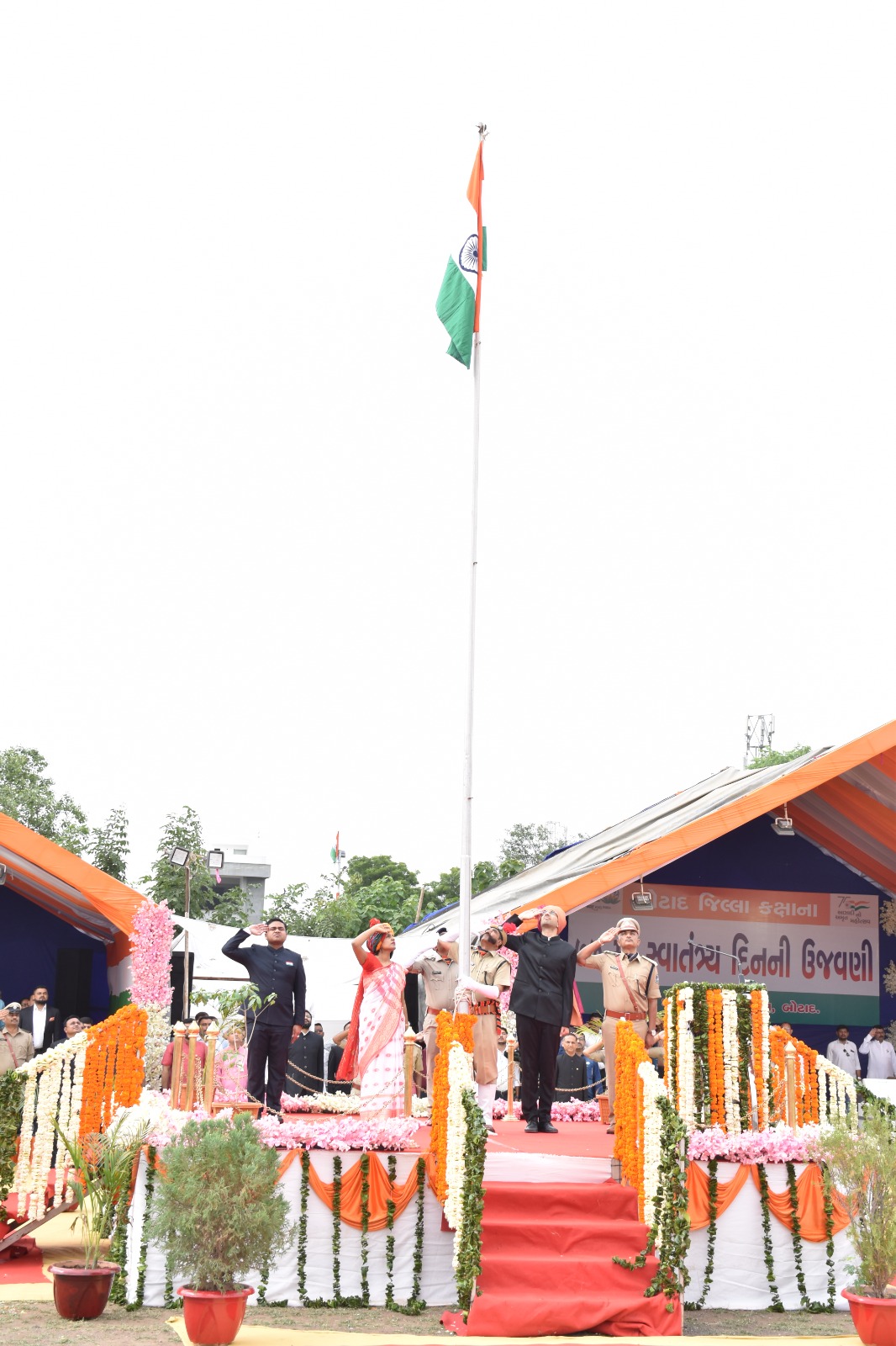 દેશની આàªàª¾àª¦à«€àª¨àª¾ અમૃત વરà«àª·àª¨àª¾ ઉપકà«àª°àª®à«‡ દેશàªàª°àª®àª¾àª‚ à«à« માં સà«àªµàª¤àª‚તà«àª°àª¤àª¾ પરà«àªµàª¨à«€ ઉજવણી ગૌરવમયી માહોલમાં થઈ રહી છે. તà«àª¯àª¾àª°à«‡ બોટાદ જિલà«àª²àª¾ ખાતે કલેકà«àªŸàª°àª¶à«àª°à«€ ડો.જીનà«àª¸à«€ રોયના અધà«àª¯àª•à«àª·àª¸à«àª¥àª¾àª¨à«‡ સà«àªµàª¾àª¤àª‚તà«àª°à«àª¯ પરà«àªµàª¨à«€ ઉજવણી હરà«àª·à«‹àª²à«àª²àª¾àª¸àªªà«‚રà«àªµàª• કરવામાં આવી હતી. “મારી માટી, મારો દેશ†અàªàª¿àª¯àª¾àª¨ અંતરà«àª—ત દેશના વીર જવાનોને નમન કરતા કલેકà«àªŸàª°àª¶à«àª°à«€ દà«àªµàª¾àª°àª¾ ગણવેશ ધારી પોલીસ દળના જવાનોની રાષà«àªŸà«àª°àª—ીતની સૂરાવલીઓ વચà«àªšà«‡ રાષà«àªŸà«àª°àª§à«àªµàªœ લહેરાવવામાં આવà«àª¯à«‹ હતો.