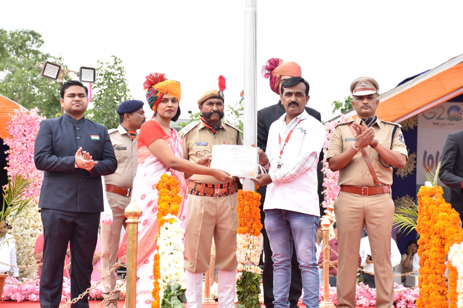 કારà«àª¯àª•à«àª°àª®àª¨à«‹ શà«àªàª¾àª°àª‚ઠકલેકà«àªŸàª°àª¶à«àª°à«€ દà«àªµàª¾àª°àª¾ ધà«àªµàªœàª¾àª°à«‹àª¹àª£àª¥à«€ કરવામાં આવà«àª¯à«‹ હતો. તà«àª¯àª¾àª°àª¬àª¾àª¦ કલેકà«àªŸàª°àª¶à«àª°à«€àª ઉપસà«àª¥àª¿àª¤ જનમેદનીને સંબોધન કરà«àª¯à«àª‚ હતà«àª‚. કલેકà«àªŸàª°àª¶à«àª°à«€àª¨àª¾ હસà«àª¤à«‡ બોટાદ જિલà«àª²àª¾àª®àª¾àª‚ વિવિધ કà«àª·à«‡àª¤à«àª°àª®àª¾àª‚ ઉપલબà«àª§àª¿ હાંસલ કરનારા તારલાઓનà«àª‚ સનà«àª®àª¾àª¨ કરવામાં આવà«àª¯à«àª‚ હતà«àª‚. જેમાં રમત-ગમત કà«àª·à«‡àª¤à«àª°à«‡ પેરાઓલà«àª®àªªàª¿àª•માં બાસà«àª•ેટબોલ રમતમાં સિલà«àªµàª° મેડલ મેળવનારા શà«àª°à«€ કાજલ બોળિયાનà«àª‚ સનà«àª®àª¾àª¨ કરવામાં આવà«àª¯à«àª‚ હતà«àª‚. ઉપરાંત 108- àªàª®à«àª¬à«àª¯à«àª²àª¨à«àª¸ સેવામાં પાયલટ તરીકે કારà«àª¯àª°àª¤ શà«àª°à«€ àªàª—વાનàªàª¾àªˆ ટમાલીયા, ઈ.àªàª®.ટી. શà«àª°à«€àªµàª¿àªªà«àª²àªàª¾àªˆ બાંàªàª£à«€àª¯àª¾, શà«àª°à«€ રાજેશàªàª¾àªˆ ધાધલ તથા બોટાદની ફાયર ટીમ, હરિયાળà«àª‚ બોટાદ બનાવવામાં મહતà«àªµàª¨à«àª‚ યોગદાન આપનારા શà«àª°à«€ મનિષàªàª¾àªˆ તથા શà«àª°à«€ જીગà«àª¨à«‡àª¶àªàª¾àªˆ સહિતના 32 શà«àª°à«‡àª·à«àª ીઓને સનà«àª®àª¾àª¨ પતà«àª° આપી નવાàªàªµàª¾àª®àª¾àª‚ આવà«àª¯àª¾ હતા.