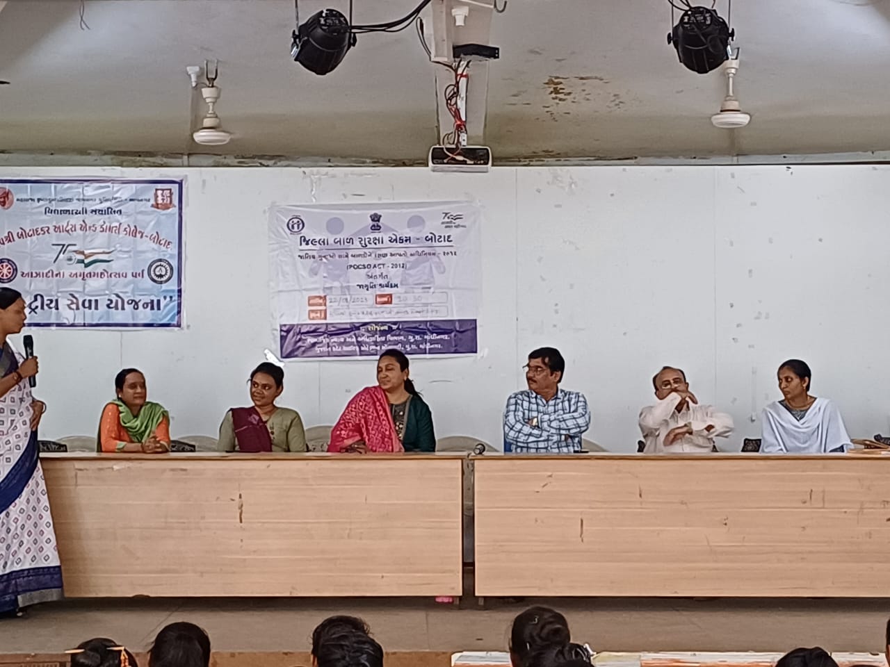 જિલ્લા કલેકટરશ્રી ડો. જીન્સી રોયના માર્ગદર્શન હેઠળ જિલ્લા બાળ સુરક્ષા એકમ-બોટાદ દ્વારા જિલ્લાની તમામ કોલેજો અને ઉચ્ચતર માધ્યમિક શાળાઓમાં કિશોરીઓને જાતિય ગુનાઓ સામે રક્ષણ આપતો અધિનિયમ 2012 અને બાળ લગ્ન પ્રતિબંધ અધિનિયમ 2006 અંગે જાગૃતિ અભિયાન શરૂ કરવામાં આવ્યું છે. આ અભિયાન અંતર્ગત જિલ્લાની વિવિધ શાળાઓ અને કોલેજો ખાતે વિવિધ કાર્યક્રમો યોજવામાં આવી રહ્યા છે.