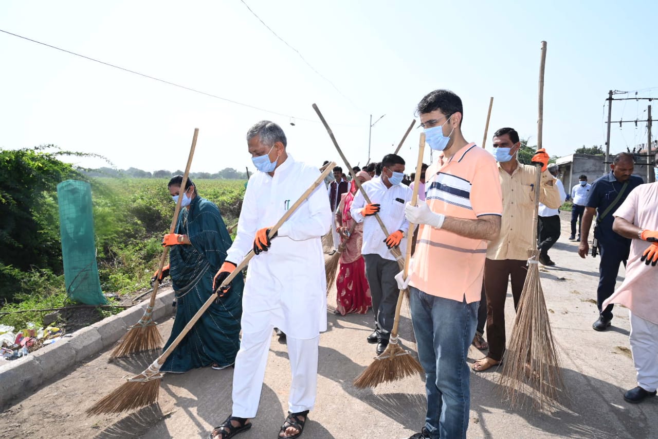“સ્વછતા હી સેવા” માસની ઉજવણીના ભાગરૂપે બોટાદના ઉમરાળા ગામની ગ્રામ પંચાયત પાસે એક તારીખ, એક કલાક’ સૂત્ર સાથે ગુજરાતના જળ સંપતિ અને પાણી પુરવઠા,અન્ન,નાગરિક પુરવઠા અને ગ્રાહક સુરક્ષા બાબતોના કેબિનેટ મંત્રીશ્રી કુંવરજીભાઇ બાવળીયા સહિતના મહાનુભાવોની ઉપસ્થિતમાં મહાશ્રમદાન કાર્યક્રમનું આયોજન કરવામાં આવ્યું હતું. જેમાં મંત્રીશ્રીએ ઉમરાળા ગામના જાહેર રસ્તાની સાફ સફાઈ કરી સ્વચ્છ ભારત અભિયાનમાં સહભાગી થવા ઉપસ્થિત સૌને આહવાન કર્યું હતું.