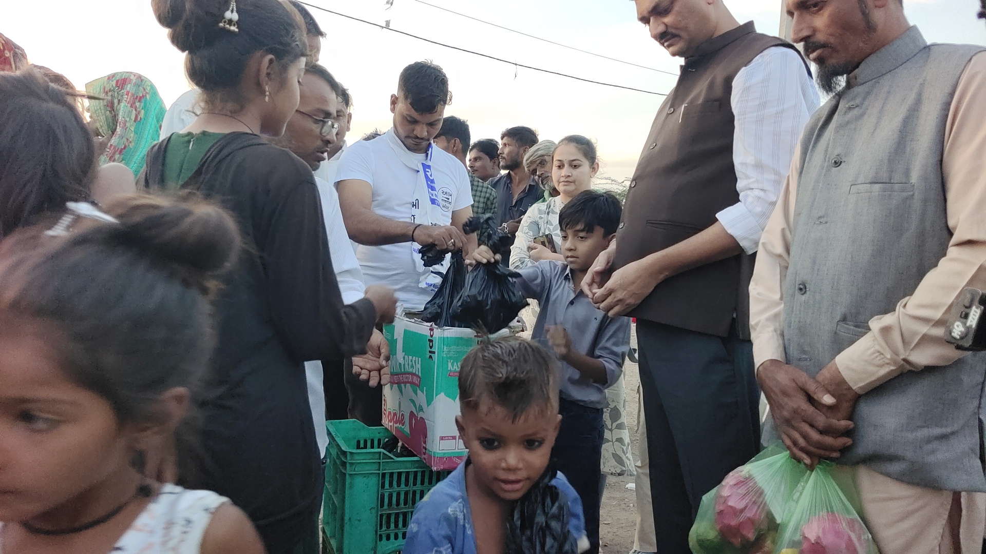 ઉમેશàªàª¾àªˆ મકવાણા દà«àªµàª¾àª°àª¾ છેલà«àª²àª¾ પાંચેક વરà«àª·àª¥à«€ àªàª• મà«àª¹àª¿àª® શરૂ કરી છે કે, સારા લોકો તો વાર તહેવારની ઉજવણી ધામધૂમથી કરતા જ હોય છે. પરંતૠજે ગરીબ વસà«àª¤à«€àª¨àª¾ લોકો છે તેમની પાસે રહેવા ઘર કે કોઈ આવકનà«àª‚ સારૠસાધન નથી તેવા લોકો તહેવારની ઉજવણી કરી શકતા નથી.જેથી આવી àªà«‚ંપડપટà«àªŸà«€ વિસà«àª¤àª¾àª°àª®àª¾àª‚ જઈને ગરીબ વસà«àª¤à«€àª®àª¾àª‚ મીઠાઈ, ફરસાણ, કપડા અને ફટાકડાનૠવિતરણ કરવà«àª‚ જોઈàª. જેથી તેઓ પણ તહેવારની ઉજવણી કરી શકે