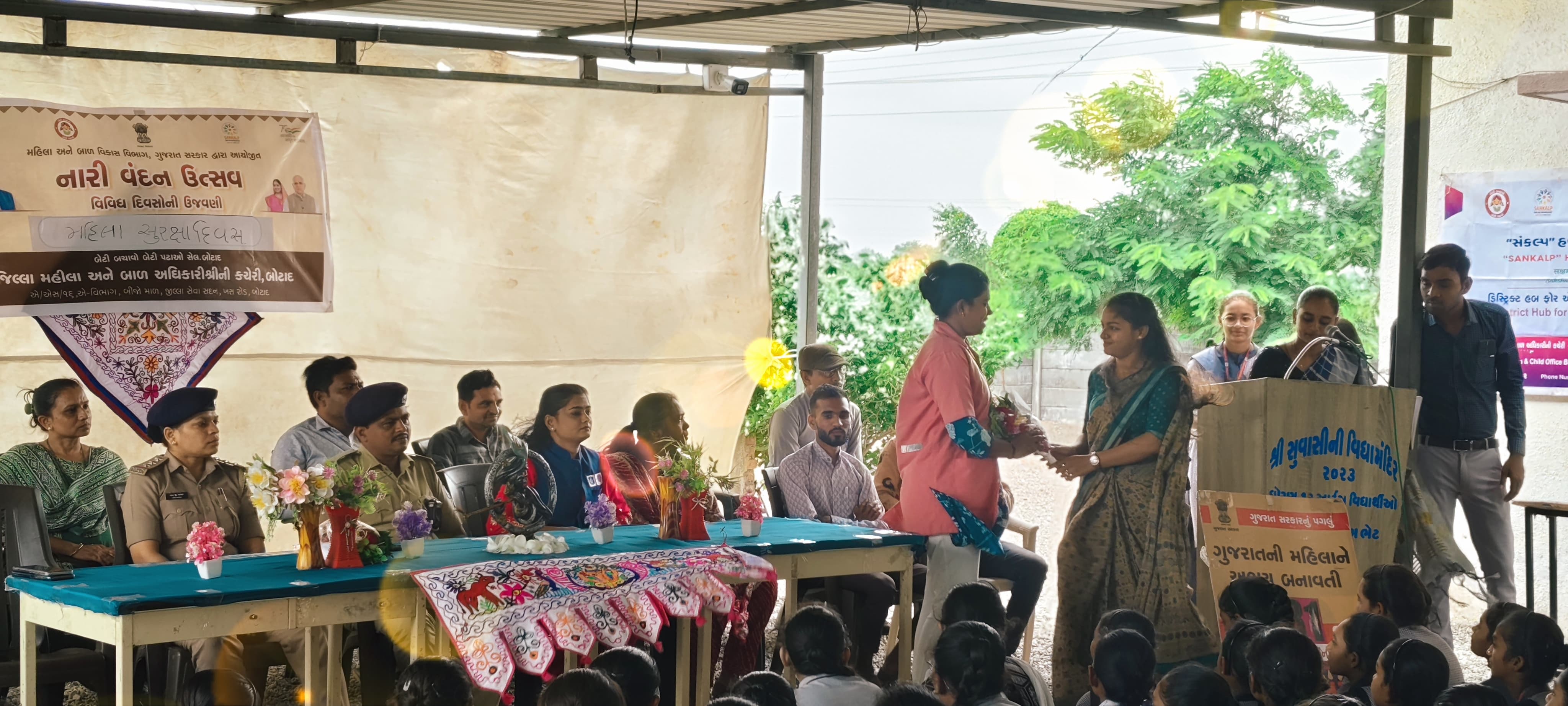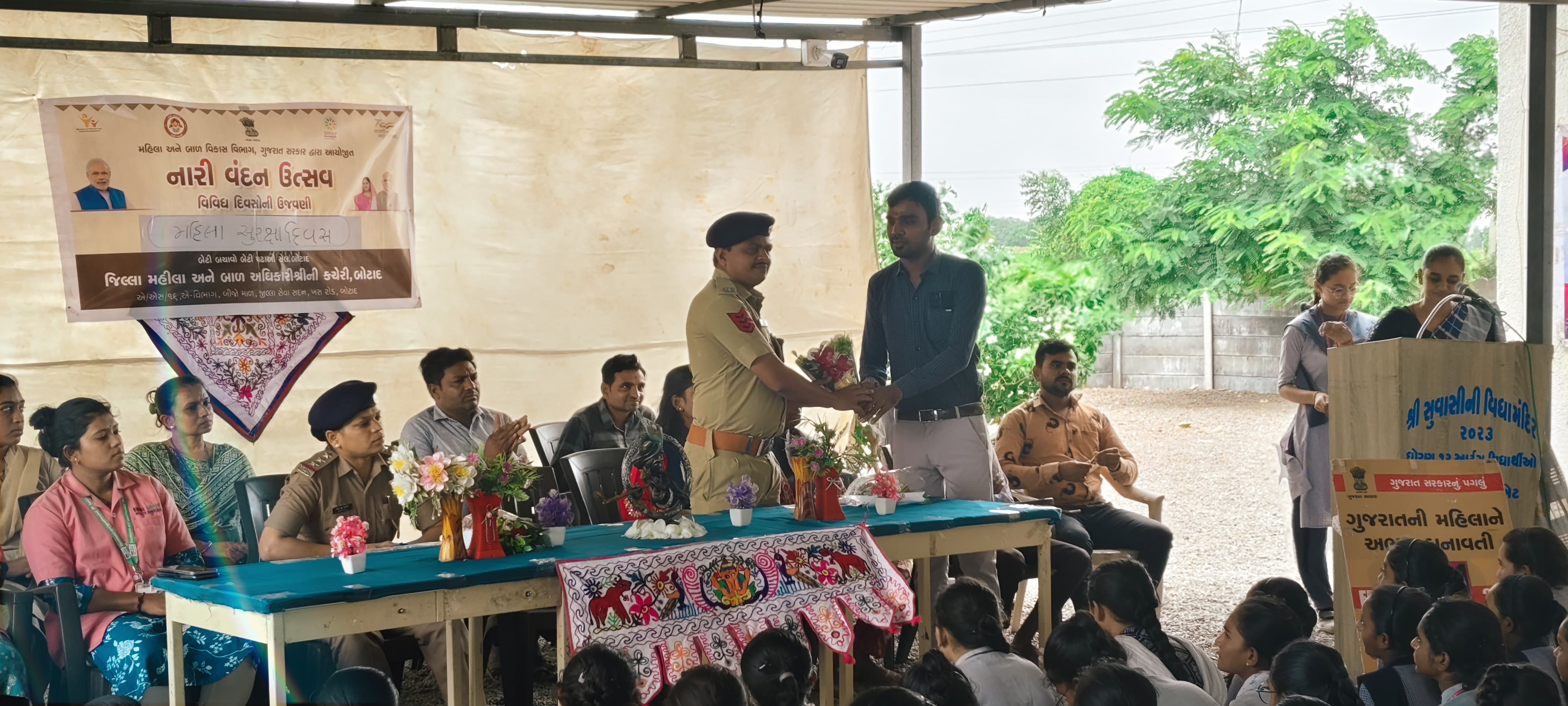 પોલીસ તેમજ જિલ્લા મહિલા બાળ અધિકારી શ્રી કચેરી ના સંકલ દ્વારા બોટાદ પોલીસ અધિક્ષક શ્રી કિશોર બલોલીયા સાહેબ તેમજ જિલ્લા મહિલા બાળ અધિકારી શ્રી આઈ આઈ મન્સૂરી સાહેબ ના માર્ગદર્શન હેઠળ નારી વંદન સપ્તાહ અંતર્ગત સુવાસિની સ્કૂલ માં બોટાદ પોલીસ સ્ટેશન ના થાણા અધિકારી શ્રી એન. જી પરમાર સાહેબ ની અધ્યક્ષતા માં મહિલા સુરક્ષા દિવસ ની ઉજવણી કરવામાં આવેલ