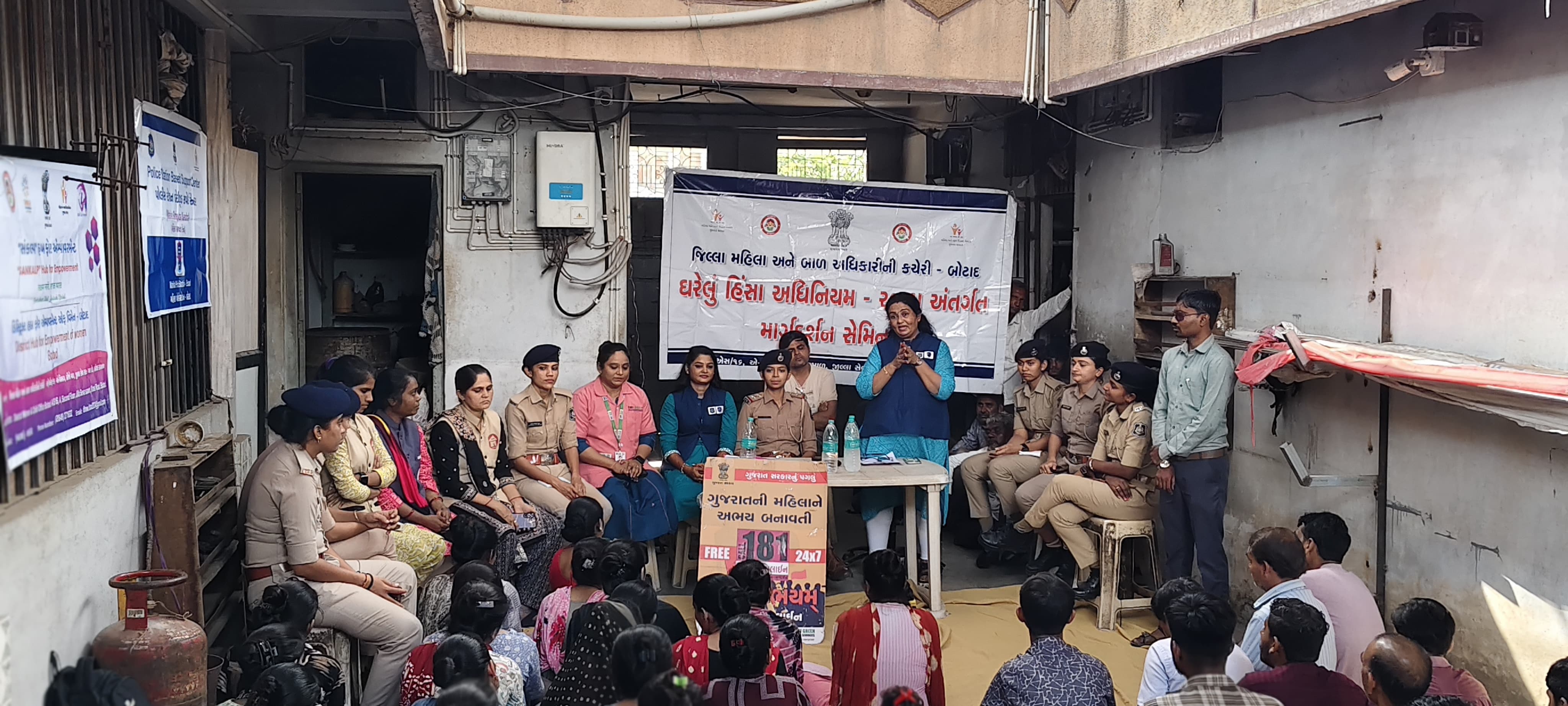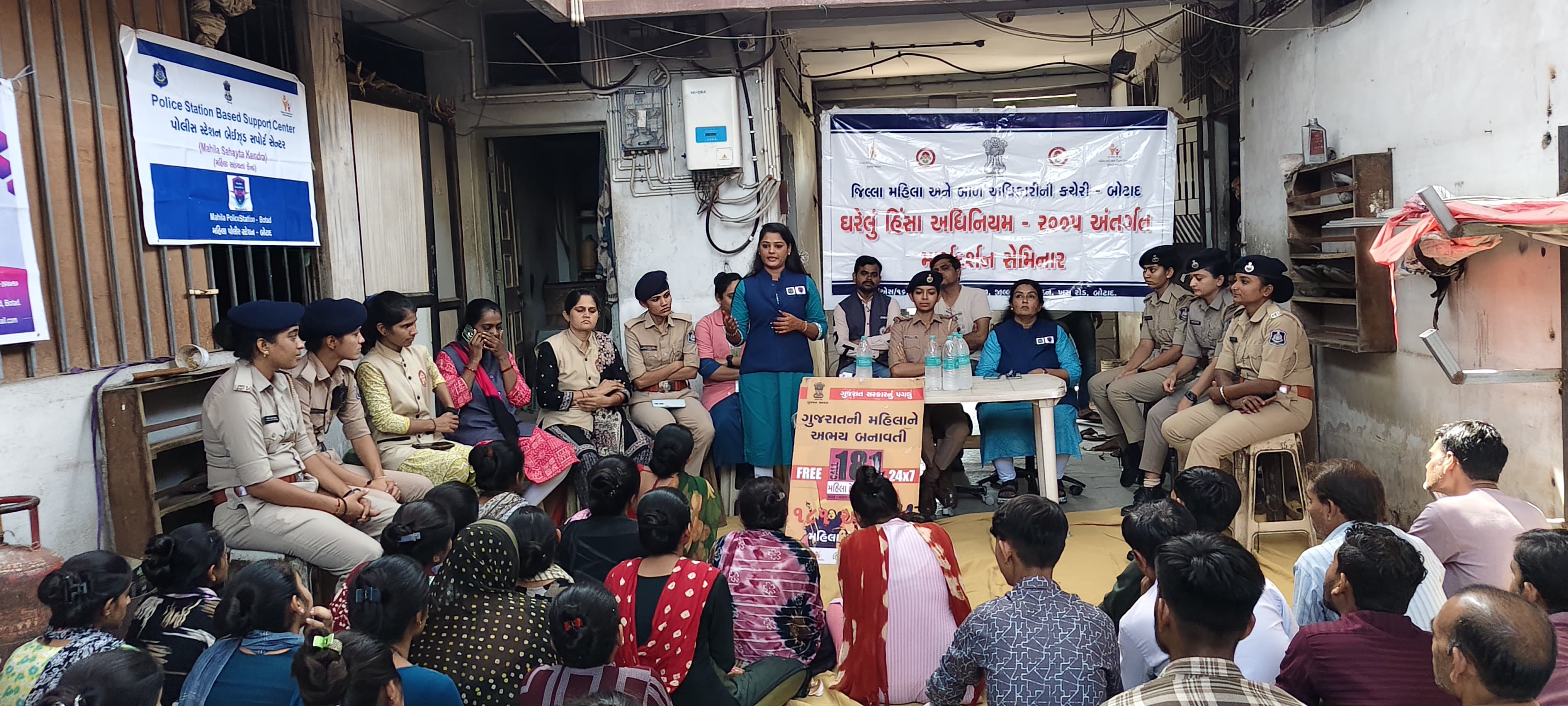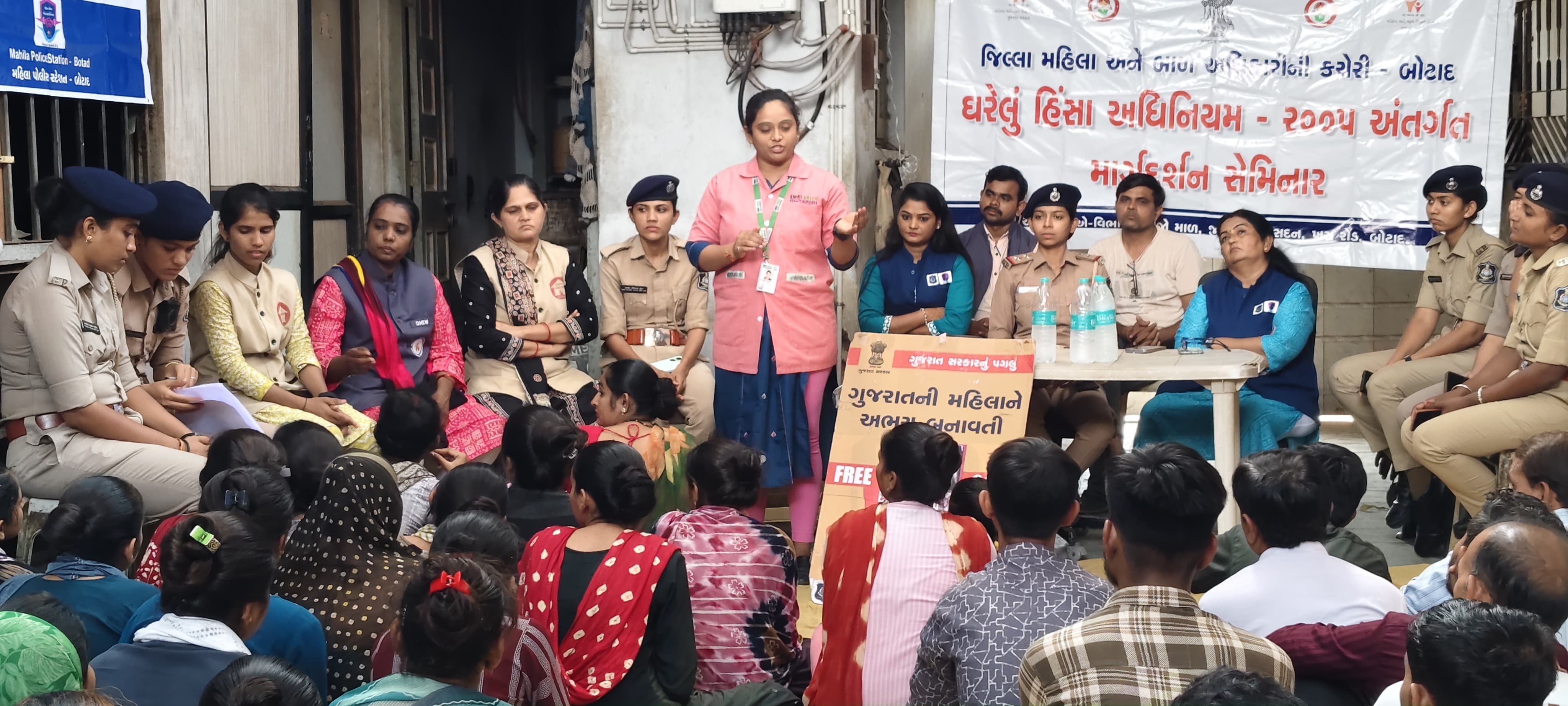 જેમાં બોટાદ મહિલા પોલીસ સ્ટેશનનના પી.એસ.આઈ. શ્રી એસ.એન.મકવાણા સાહેબ દ્વારા પોક્સો એક્ટ તેમ IUCAW ની કામગીરી તેમજ દરેક બેહનો સ્વ નિર્ભર બની બાળકો ની વિશેષ કાળજી લઇ ઉચ્ચતર અભ્યાસ કરાવે તેવી શુભેચ્છા પાઠવેલ પોલીસ સ્ટેશન બેઇઝડ સપોર્ટ સેન્ટરના કાઉન્સેલર રિંકલબેન મકવાણા દ્વારા **ઘરેલું હિંસા અધિનિયમ 2005** વિષે કાયદાકીય માર્ગદર્શન તેમજ પોલીસ સ્ટેશન બેઇઝડ સપોર્ટ સેન્ટરની કામગીરી વિષે માહિતી આપેલ